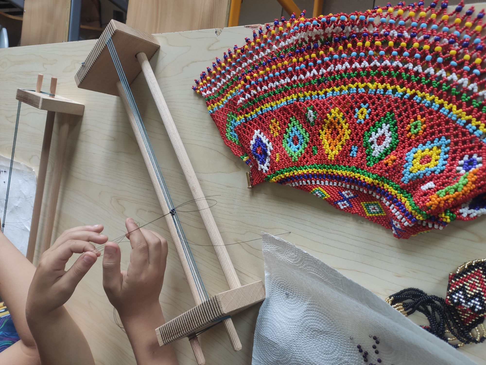 Podczas warsztatów pt. „Karpacka Bransoletka”, prowadzonych przez Ewelinę Matusiak-Wyderkę, uczestnicy mieli okazję przyjrzeć się tradycyjnej technice wykonywania karpackiej biżuterii koralikowej. Uczestnicy wykonywali ją indywidualnie zgodnie z zasadami lokalnej techniki rękodzielniczej. Bransoletki stworzone zostały ze szklanych koralików.