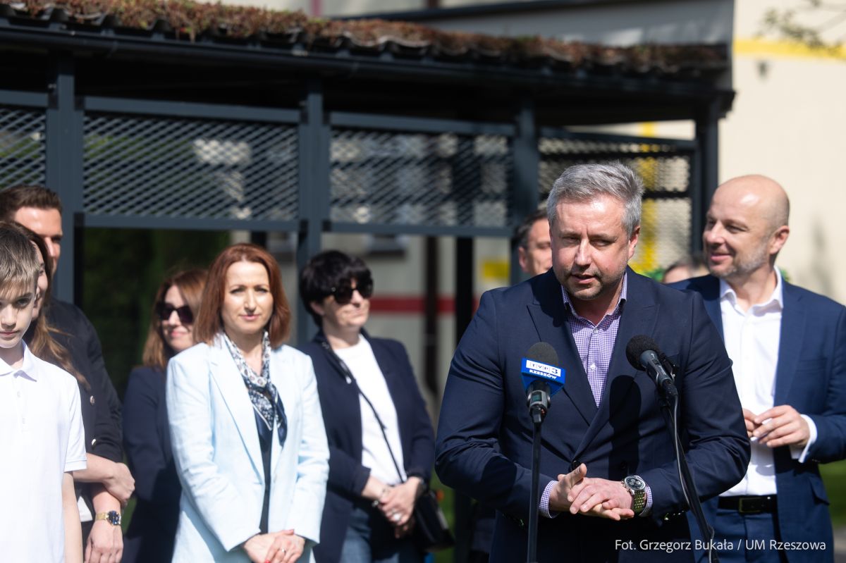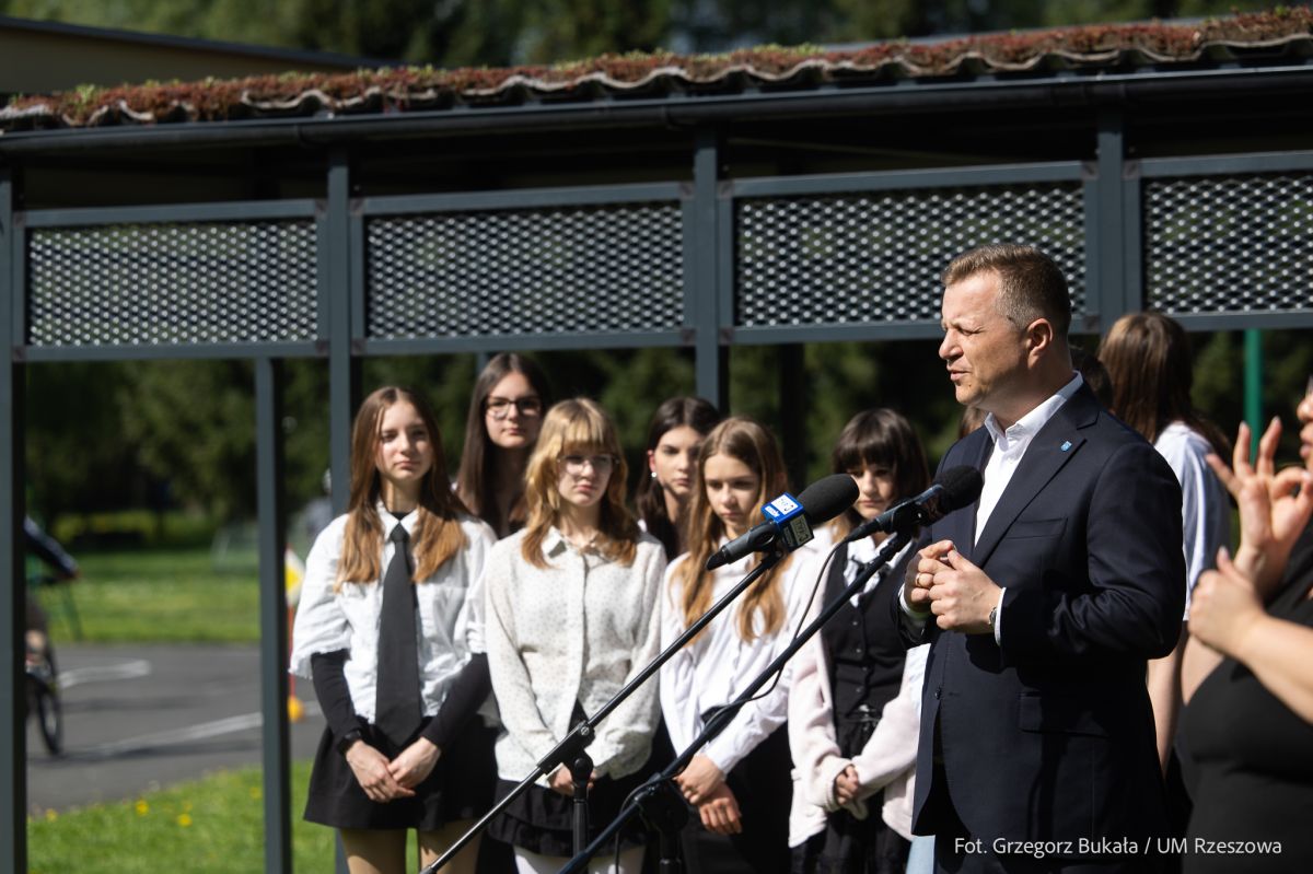 - Teren tej szkoły to jedno z piękniejszych miejsc w naszym mieście. Tuż obok się wychowywałem i to tu rozegrałem mnóstwo bardzo ważnych meczów piłkarskich. To jedna z fajniejszych szkół i mam do niej ogromny sentyment. I to właśnie tu zapowiadamy inaugurację akcji Rowerowy Maj, który rusza 5 maja – powiedział Konrad Fijołek, Prezydent Rzeszowa. - W tym roku akcji towarzyszył również konkurs „GO GREEN – ECO WIATA ROWEROWA”. Jego uczestnicy pokazali, że ekologia i troska o środowisko są dla nich naprawdę ważne. Dziękuję wszystkim uczestnikom i gratuluję zwycięzcom – jesteście inspiracją dla nas wszystkich. Dziękuję za współpracę w tym przedsięwzięciu fundatorowi wiaty - firmie Geokart - International Sp. z o.o. i jej prezesowi - Panu Sebastianowi Skalskiemu oraz Panu Mateuszowi Ciszewskiemu – Prezesowi Fundacji Creative.pl. Pokazujecie, jak istotna jest rola odpowiedzialnego biznesu. I jak biznes i organizacje pozarządowe mogą włączać się we wspólne działania z miastem i wspierać edukację.