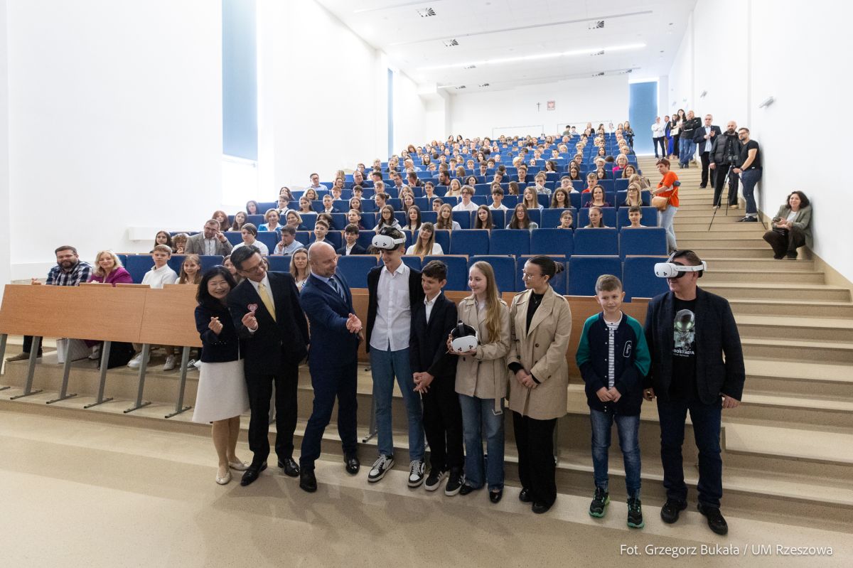 Sprzęt eduVR zakupiono dla wszystkich 35 rzeszowskich podstawówek. Na jeden zestaw składa się: gogle VR, walizka do ich przechowywania i ładowania oraz akcesoria. Nowoczesnym wyposażeniem cieszy się już Szkoła Podstawowa nr 18 z oddziałami dwujęzycznymi. I to właśnie tu w piątek, 25 bm., odbyła się konferencja prasowa z udziałem Jeffa Y. J. Liu, szefa Przedstawicielstwa Tajpej w Polsce. Towarzyszyła mu Corrina Hu, zastępca szefa Przedstawicielstwa Tajpej w Polsce.