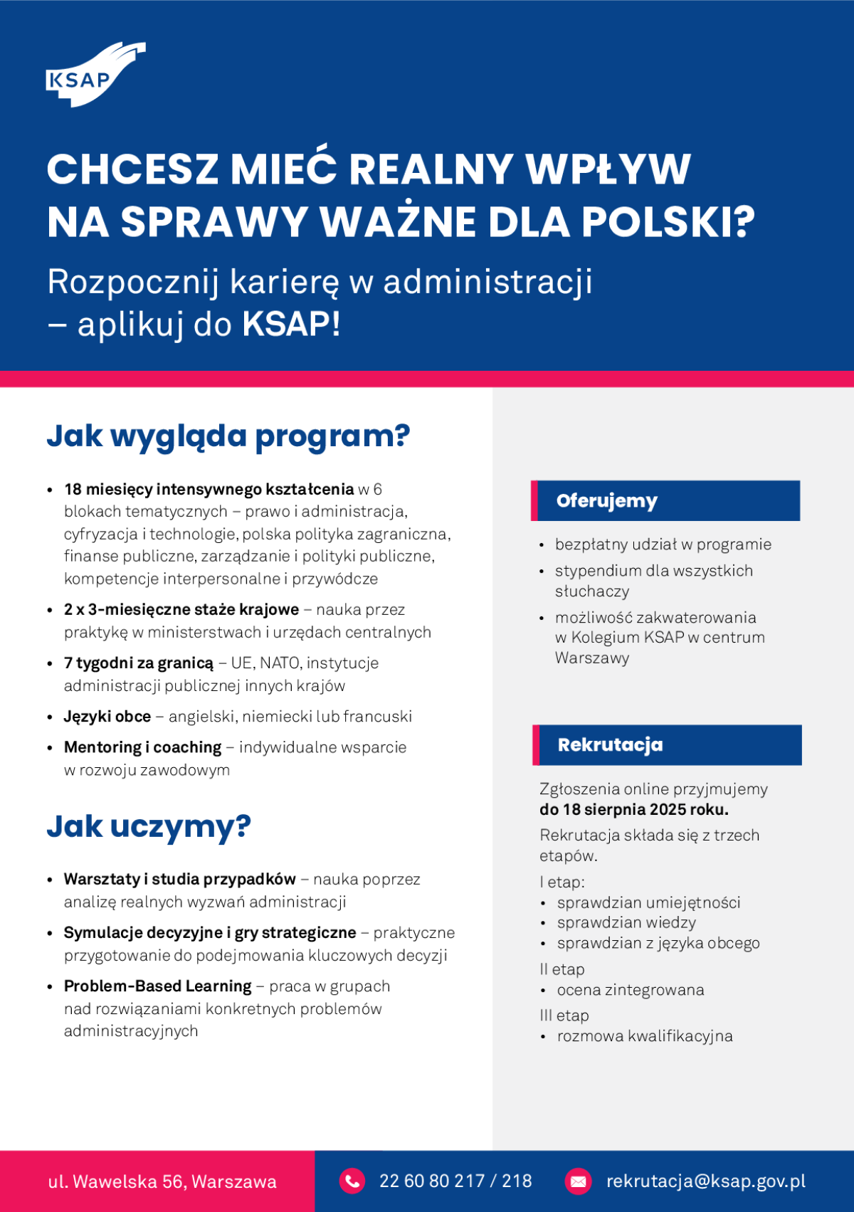 Szczegóły programu oraz rekrutacji dostępne są na stronie: www.ksap.gov.pl