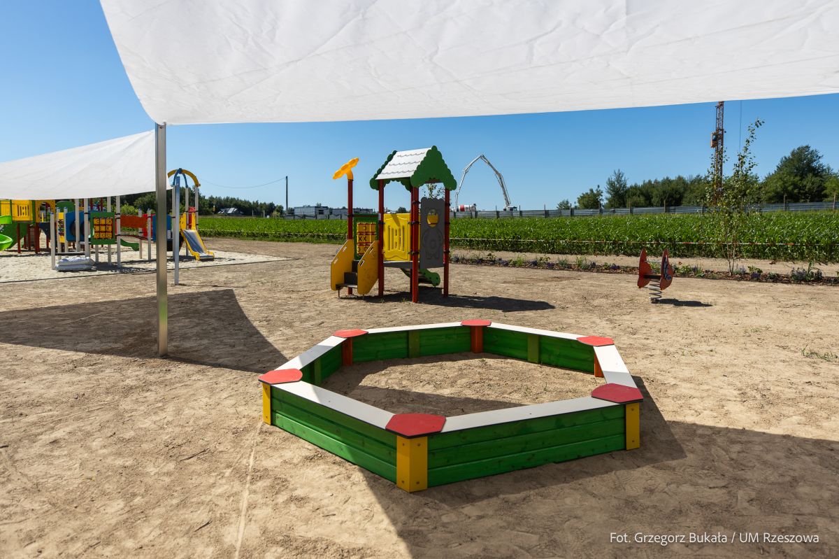 Inwestycja jest już praktycznie na finiszu. Zgodnie z przygotowaną przez Zarząd Zieleni Miejskiej w Rzeszowie dokumentacją na działkach przy ul. Ceramicznej zamontowane zostały m.in. zestawy zabawowe dla dzieci, z wieżami, zjeżdżalniami, pomostami, ścianką wspinaczkową. Innymi elementami, z których będą korzystać najmłodsi rzeszowianie są huśtawki, karuzele, bujaki, piaskownica i huśtawka wagowa. Ponadto na placu zabaw jest także piramida linowa i tyrolka. Zamontowane zostały także żagle zacieniające oraz urządzenia do street workout. Częścią tego zadania były także nasadzenia zieleni – w sumie ponad 800 krzewów, bylin, traw oraz rekultywacja istniejącego trawnika.