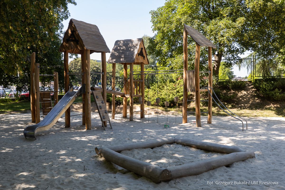 Dzięki temu został wybudowany nowy plac zabaw z piaskownicą, zestawem huśtawek, zestawem sprawnościowym i urządzeniem zabawowym dla dzieci. Zamontowano także dwa zestawy do street workoutu. Wszystko ze strefami bezpiecznymi z piasku. Wyposażenie placu zabaw jest wykonane w dużej części z elementów drewnianych. Na boisku zamontowano nowe bramki. Przy schodach prowadzących do parku oraz przy wejściu na boisko sportowe pojawiły się drewniane pergole. Nie zabrakło oczywiście ławek oraz stojaków rowerowych.