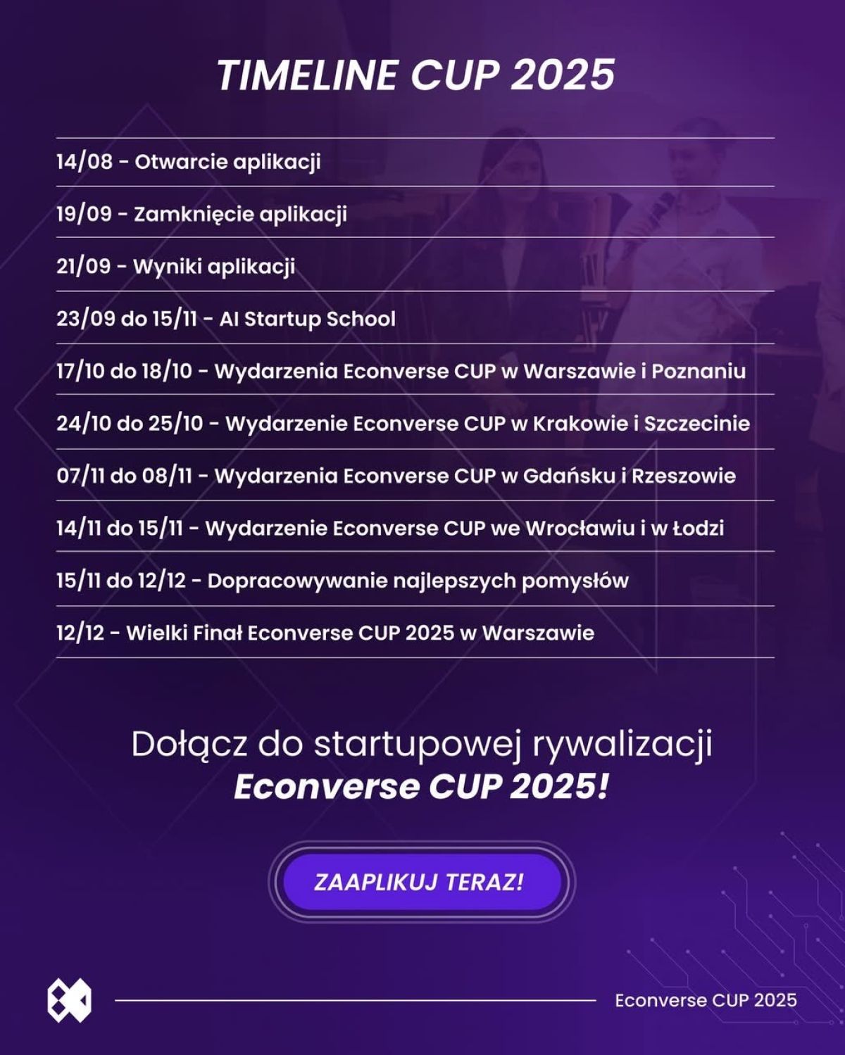 Econverse CUP to największe w Polsce wydarzenie dla uczniów szkół średnich, którzy chcą spróbować swoich sił w roli młodych przedsiębiorców. Uczestnicy w ramach symulacji tworzą własny startup - od pomysłu, przez strategię, aż po prezentację przed jury - wszystko pod okiem doświadczonych mentorów.