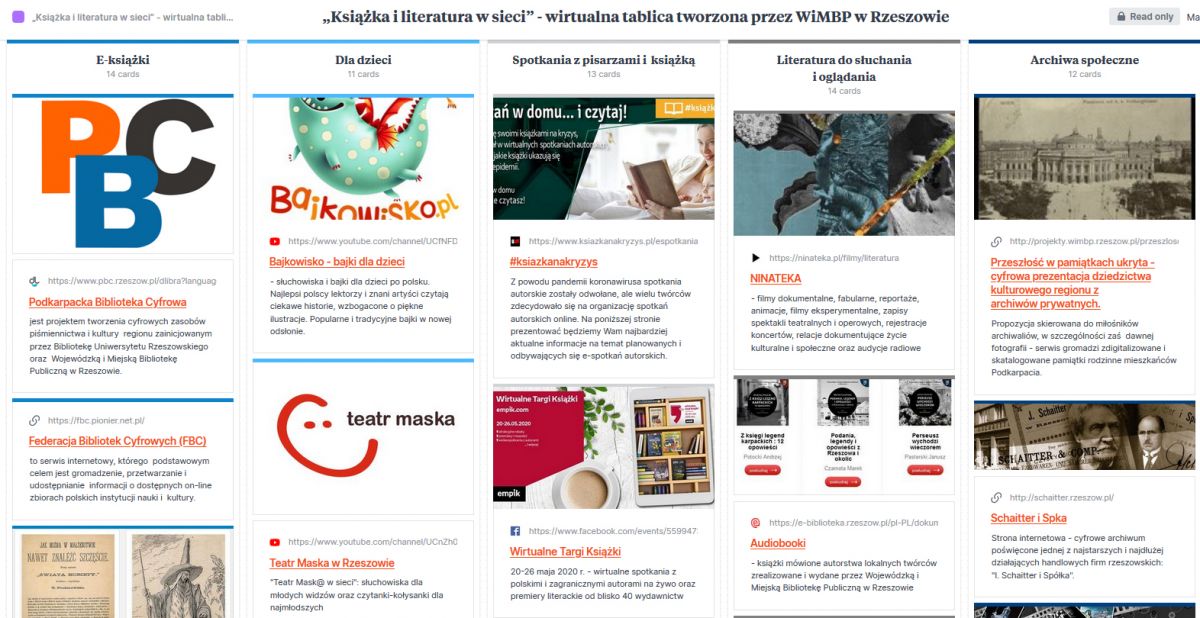 Wojewódzka i Miejska Biblioteka Publiczna w Rzeszowie przygotowała dla czytelników wirtualną tablicę zawierającą linki do ciekawych zasobów internetowych związanych z książką i literaturą.
