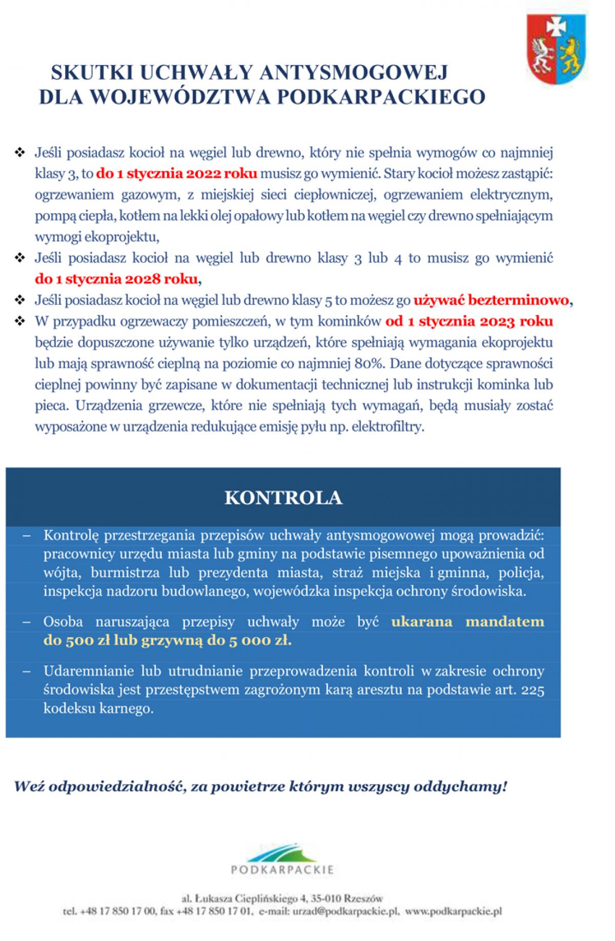 Ten obowiązek wynika z Uchwały antysmogowej obowiązującej na terenie województwa podkarpackiego od 2 czerwca 2018 r., przyjętej przez Sejmik Województwa w dniu 23 kwietnia 2018 r. (Uchwała Nr LII/869/18).