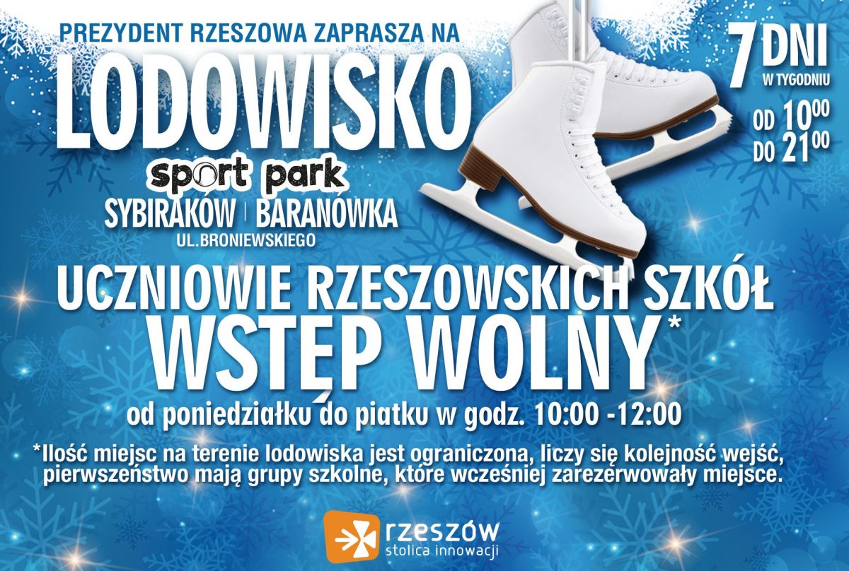 Prezydent Miasta Rzeszowa zaprasza mieszkańców na LODOWISKO, zlokalizowane w Parku Sybiraków przy ul. Broniewskiego w Rzeszowie.