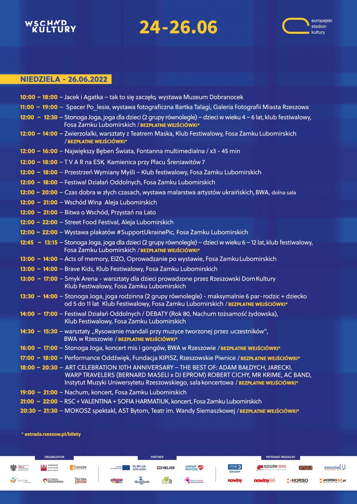 Wszystkie wydarzenia w ramach Europejskiego Stadionu Kultury są bezpłatne.
