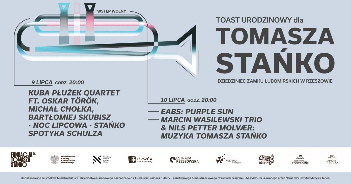 11 lipca 2022 r. przypada 80.rocznica urodzin Tomasza Stańko, pochodzącego z Rzeszowa wybitnego trębacza jazzowego. Już po raz czwarty będziemy celebrować jego twórczość w wyjątkowych interpretacjach wykonawców młodszego pokolenia oraz artystów, którzy mieli zaszczyt grać z Mistrzem na jednej scenie. Koncerty rozpoczniemy 9 i 10 lipca - wtedy na scenie na dziedzińcu Zamku Lubomirskich pojawią się m.in. Marcin Wasilewski Trio i gościnnie znakomity norweski trębacz NilsvPetterMolvær. To jednak nie koniec muzycznych atrakcji tegorocznego „Toastu”.