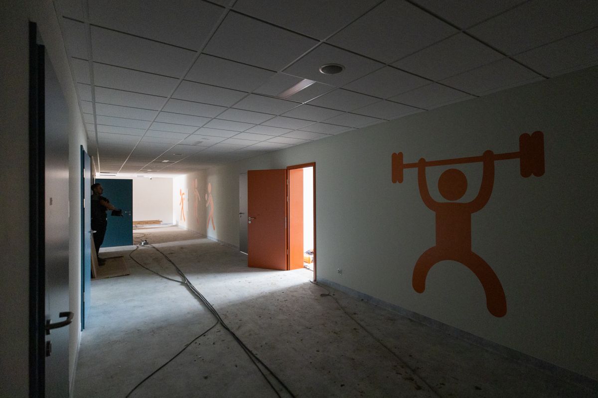 Aktualnie w budynku i w jego otoczeniu trwają prace wykończeniowe. Pomieszczenia wewnętrzne są już pomalowane i aktualnie trwa ich sprzątanie. Na sali gimnastycznej kończona jest posadzka.