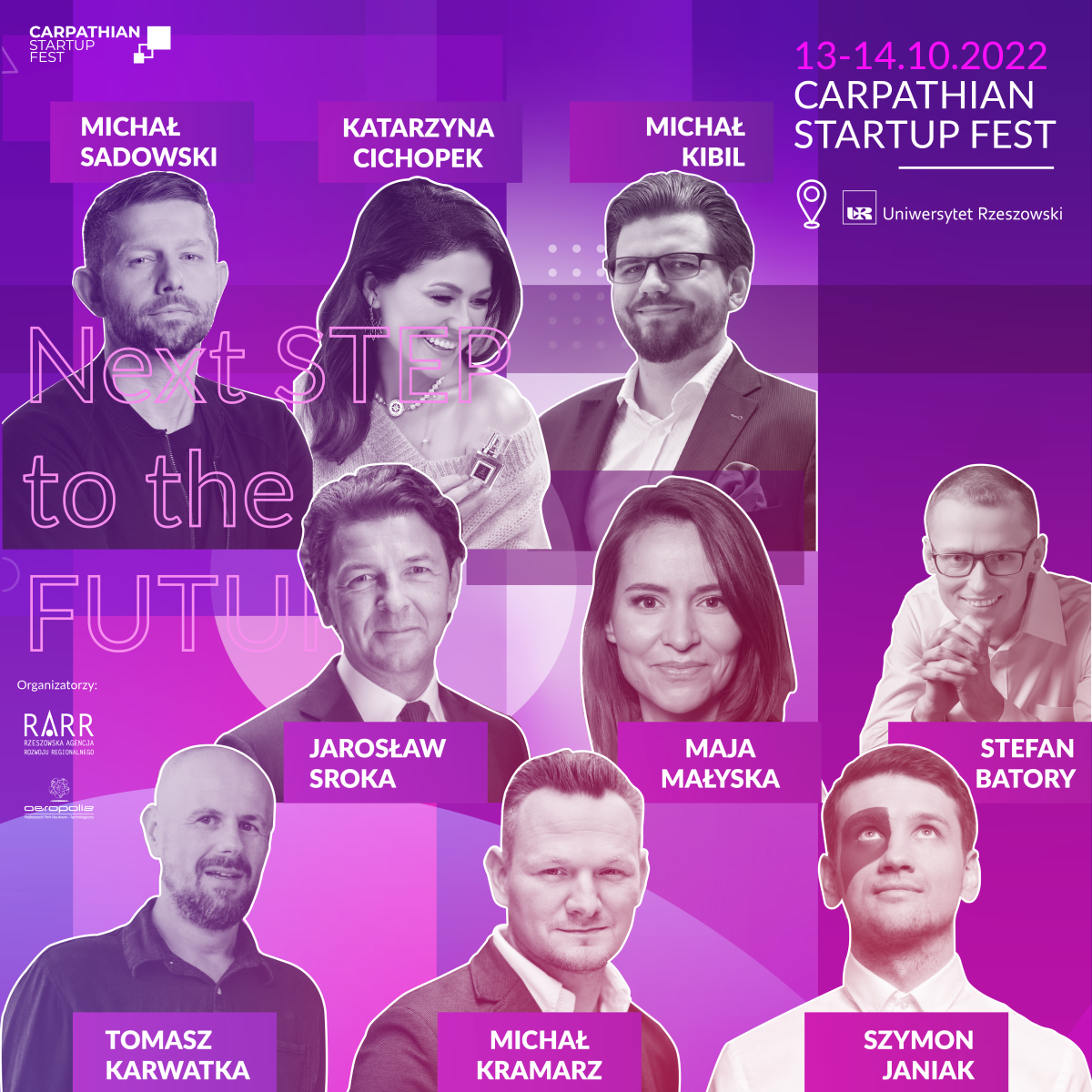Na scenach Carpathian Startup Fest 2022 wystąpi ponad 80 prelegentów i panelistów. Wśród nich między innymi: Michał Sadowski Brand24, Stefan Batory Booksy, Jarosław Sroka Kulczyk Investments, Michał Kramarz Google, Katarzyna Cichopek Marka Ya, Małgorzata Jarosińska-Jedynak Ministerstwo Funduszy i Polityki Regionalnej, Edyta Stanek ML System, Marcin Seniuk PARP, Marek Panek Asseco Poland, Marta Półtorak Marma Polskie Folie, Michał Kozak Hotel Arłamów, a także wielu, wielu innych których ujawniamy w załączonych agendach.