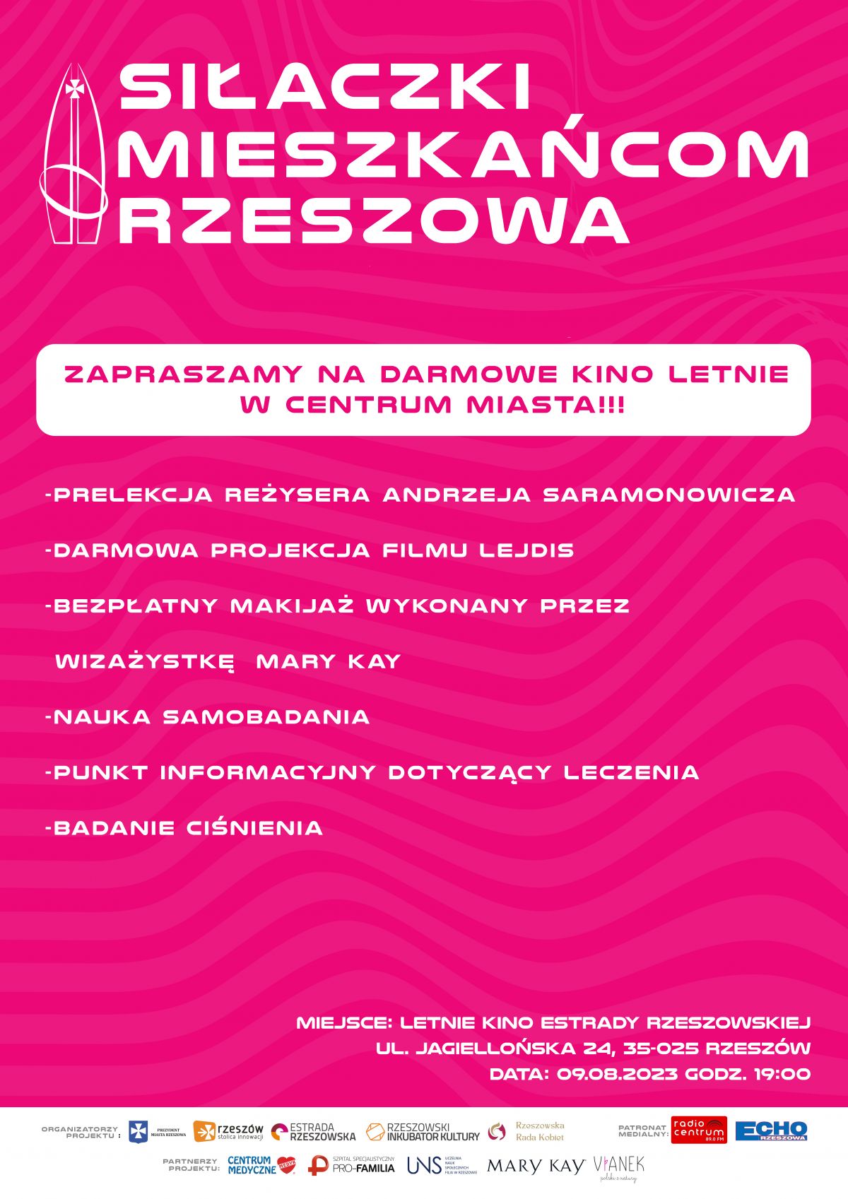 Wydarzenie odbywa się pod nazwą „Siłaczki mieszkańcom Rzeszowa”. Oprócz pokazu filmu i spotkania z reżyserem zaplanowano także naukę samoobrony, wykonywanie bezpłatnego makijażu przez wizażystkę Mary Kay, punkt informacyjny dotyczący leczenia oraz pomiary ciśnienia.