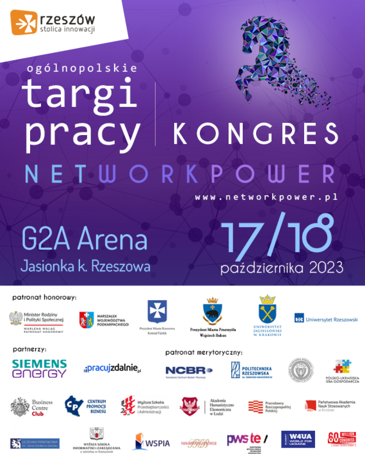 Tegoroczna edycja wydarzenia odbędzie się w dniach 17-18 października w największym kompleksie wystawienniczo-kongresowym w tej części Polski, w G2A Arenie w Jasionce k. Rzeszowa. Kongres będzie również transmitowany on-line. To wyjątkowa inicjatywa, która będzie miała szczególne znaczenie dla rynku pracy, ponieważ w jednym miejscu spotkają się pracodawcy, pracownicy, związki zawodowe, eksperci, szkoły, uczelnie, administracja rządowa i samorządowa, podmioty wspierające aktywizację zawodową, instytucje rynku pracy, a także organizacje pracodawców, po to by zainaugurować działalność sieci współpracy NETWORKPOWER oraz nawiązać nowe lub pogłębić dotychczasowe relacje biznesowe oraz zawodowe.